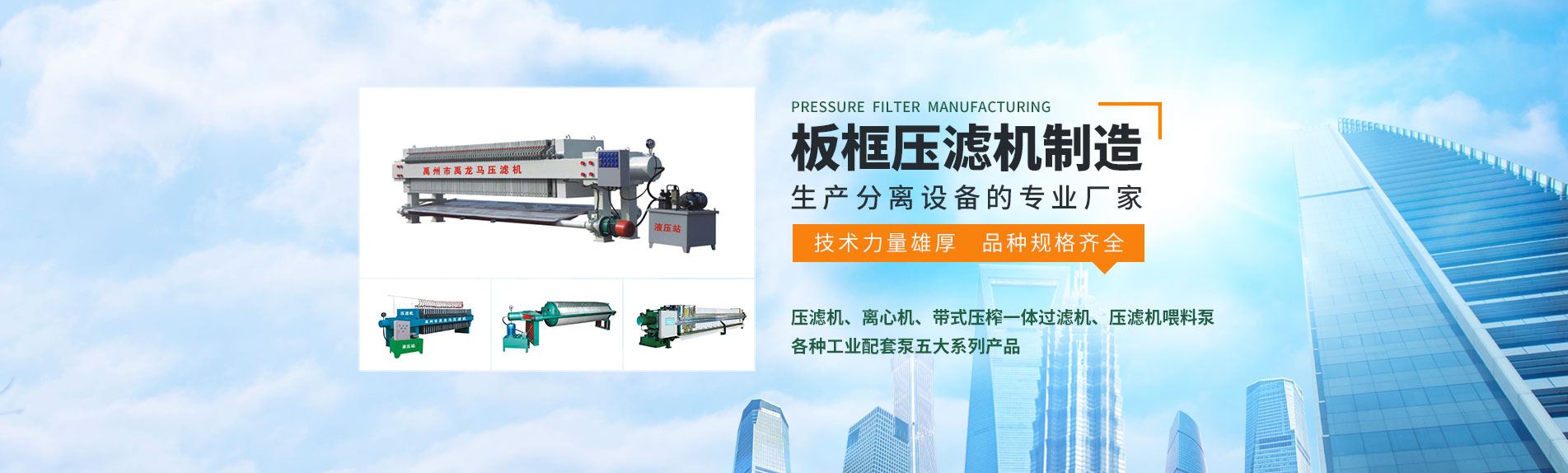主要生產(chǎn)壓濾機(jī)、離心機(jī)、帶式壓榨一體過(guò)濾機(jī)、壓濾機(jī)喂料泵及各種工業(yè)配套泵五大系列產(chǎn)品。